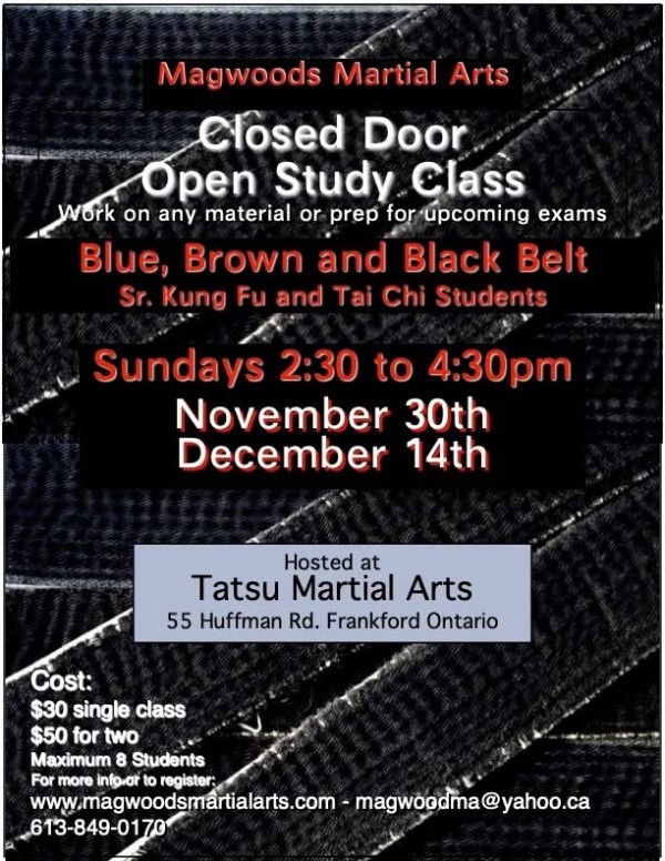 | Brown & Black Belt Class Belleville, ON December 6, 2009 Flyer |