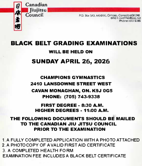 Congratulations to the following candidates on their success today at the Canadian Jiu Jitsu Council's Black Belt exams in Peterborough, Ontario