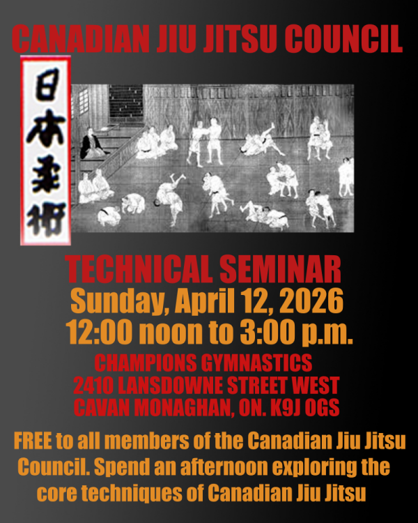 The Canadian Jiu Jitsu Council is offering a technical seminar under the tutelage of its Directors. The date of the seminar is Sunday, October 5, 2025 from 12:00 noon until 3:00 PM.